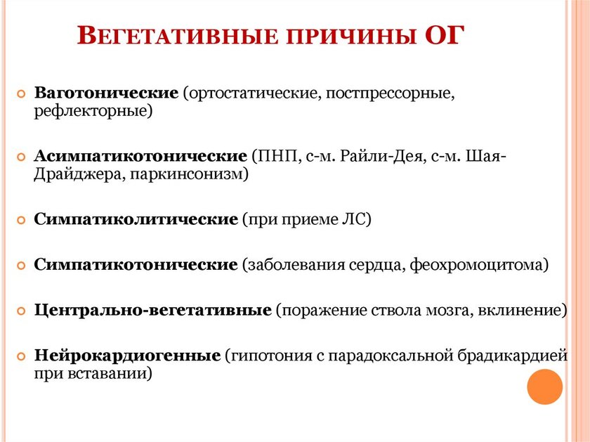 Причины ортостатической гипотензии